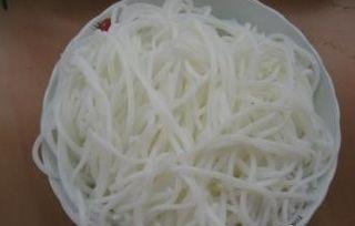 (2)将瘦肉切成丝,用料酒、生抽、淀粉腌制10分钟;